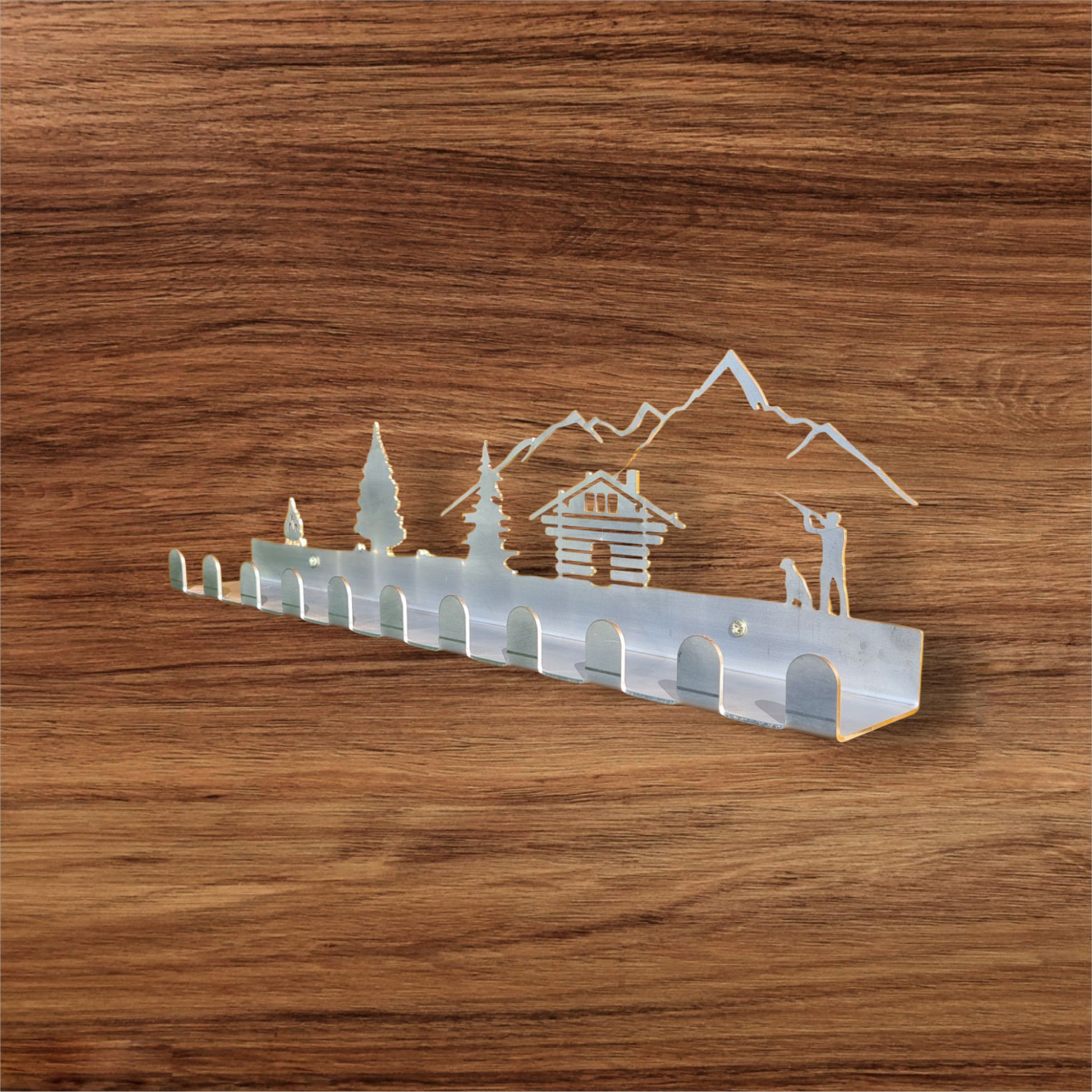 Verleihe deinem Zuhause einen Hauch von Wildnis mit unserer hochwertigen Edelstahl-Garderobe mit jagdlichem Motiv! Egal ob Hirsch, Wildschwein oder Jäger mit Hund – die filigran gelaserten Motive im Hintergrund machen diese Garderobe zu einem einzigartigen Blickfang. Perfekt für Flur, Jagdzimmer oder die Berghütte!